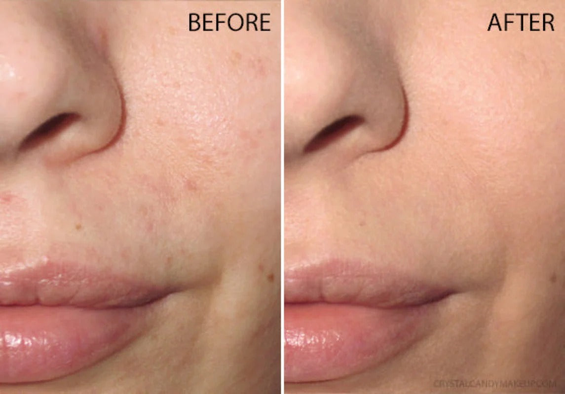 Apply to the face and blend with fingertips, beauty sponge, or foundation brush.